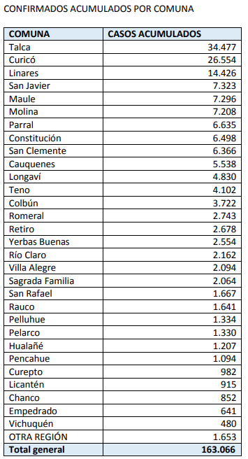 El Maule registró 3.303 nuevos casos de Covid-19 y 10 fallecidos